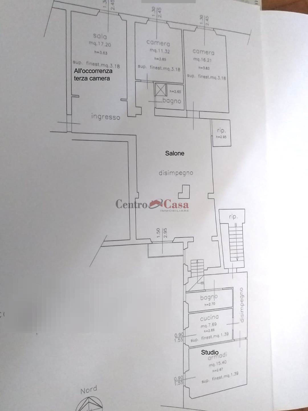 The entrance opens onto a large hallway that leads to a large bright living room, enriched by a balcony overlooking a quiet internal courtyard, the three bedrooms, one with a private bathroom, and the storage room.