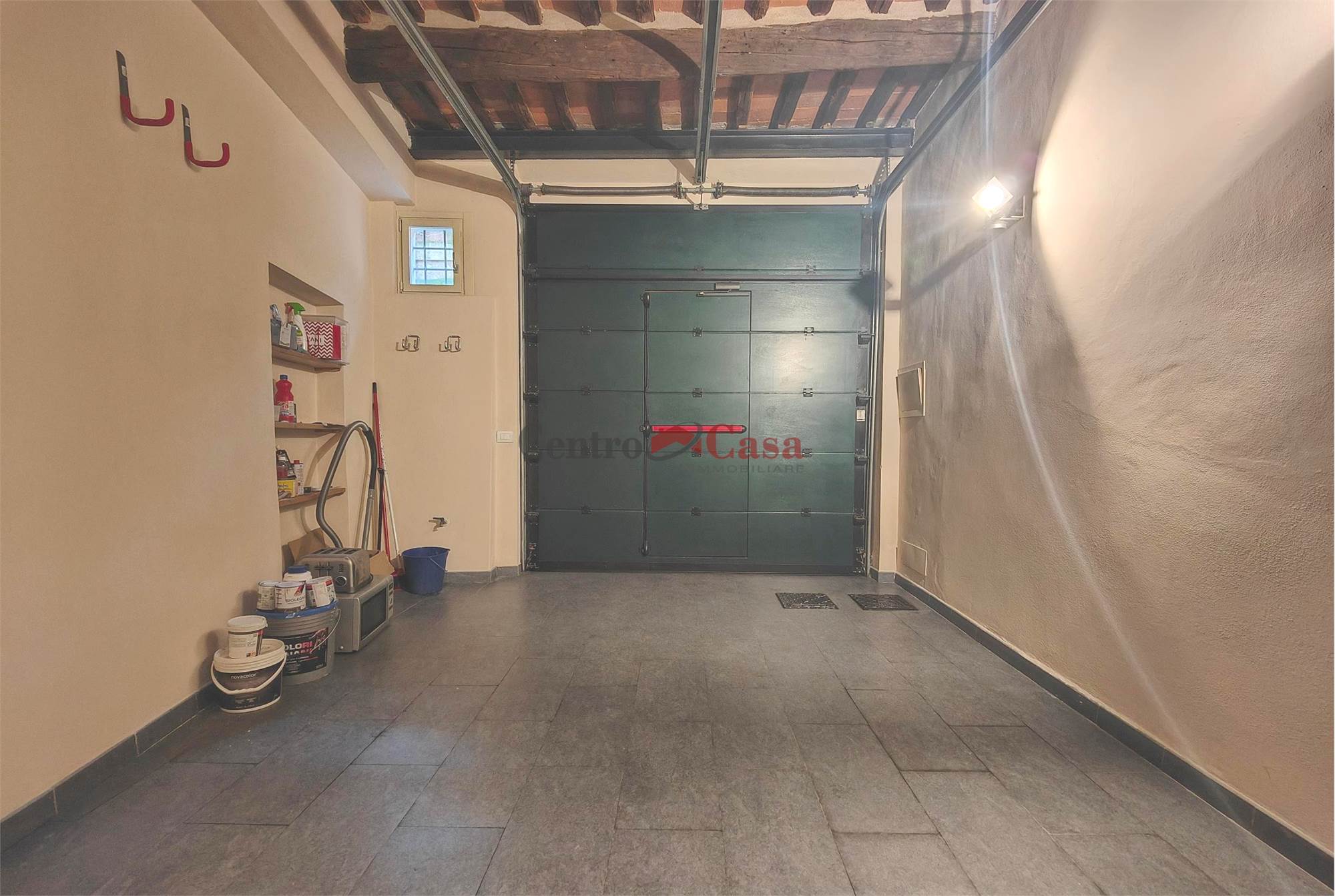 L’abitazione, elegante e ricercata, è dotata di aria condizionata e si distingue per le finiture di qualità: pareti con pietra e mattoni a vista, pavimenti in parquet e un raffinato arredamento in stile moderno. L’accesso avviene direttamente dal garage e gli spazi interni si articolano in un ingresso/corridoio, un'ampia zona giorno dove troviamo l'ampio soggiorno e la cucina a vista, una camera da letto, un bagno, infine un comodo ripostiglio ad uso lavanderia.