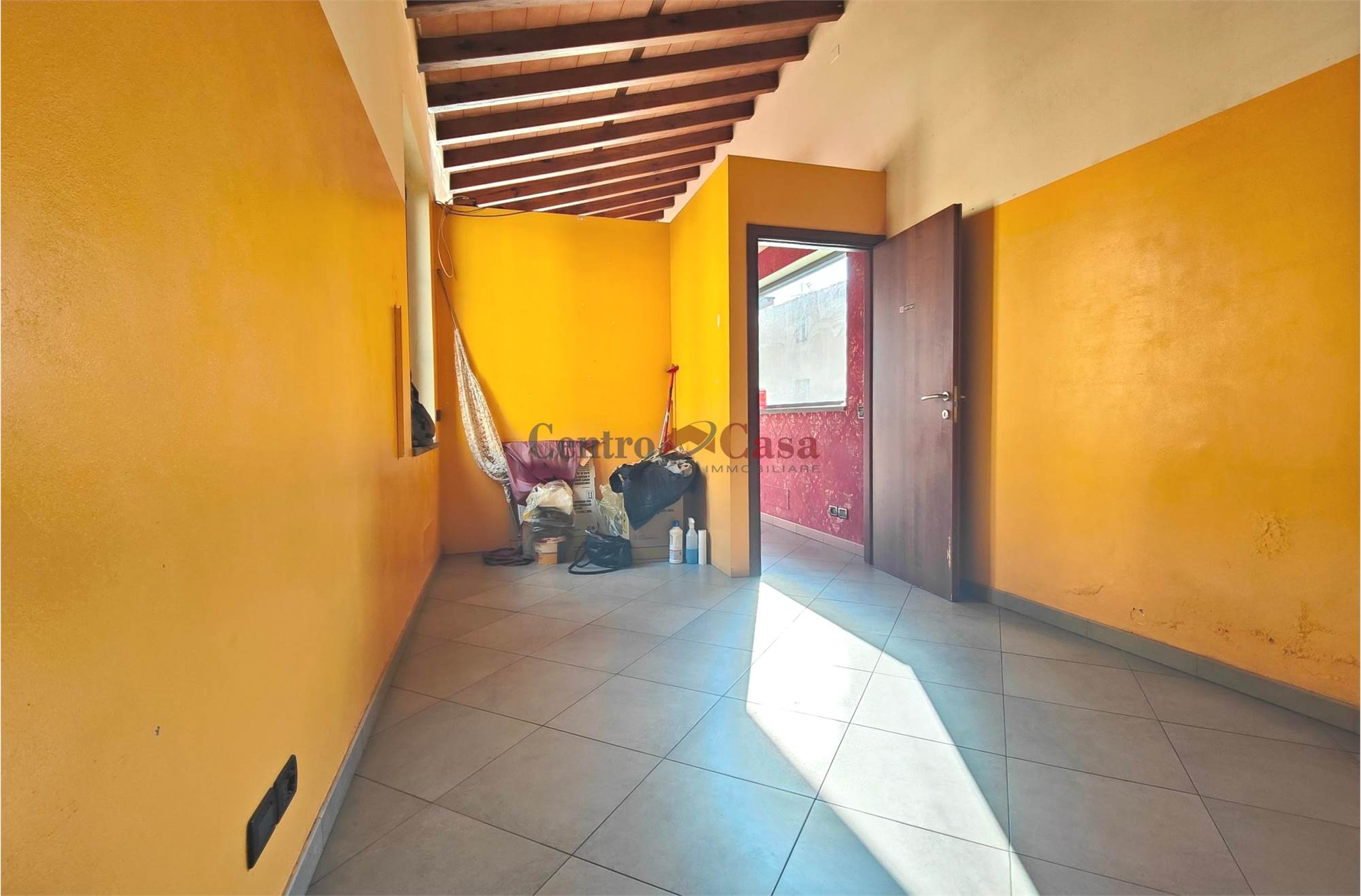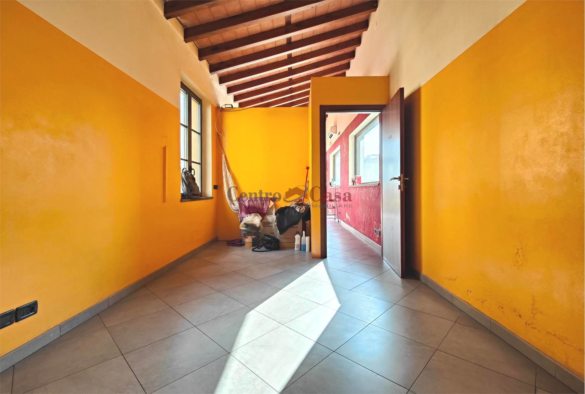 caratteristico tetto con travicelli a vista, che dona personalità all’ambiente.