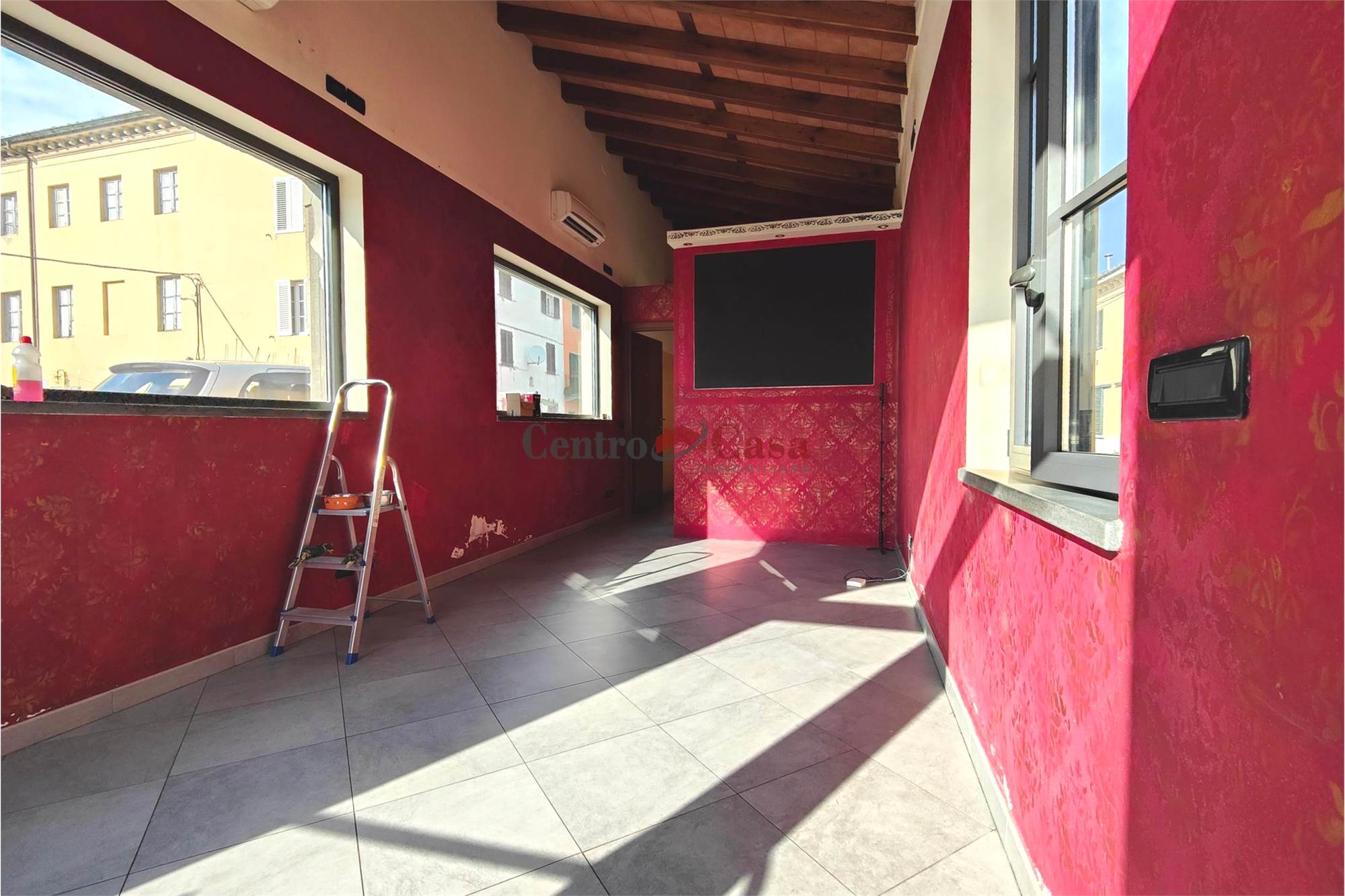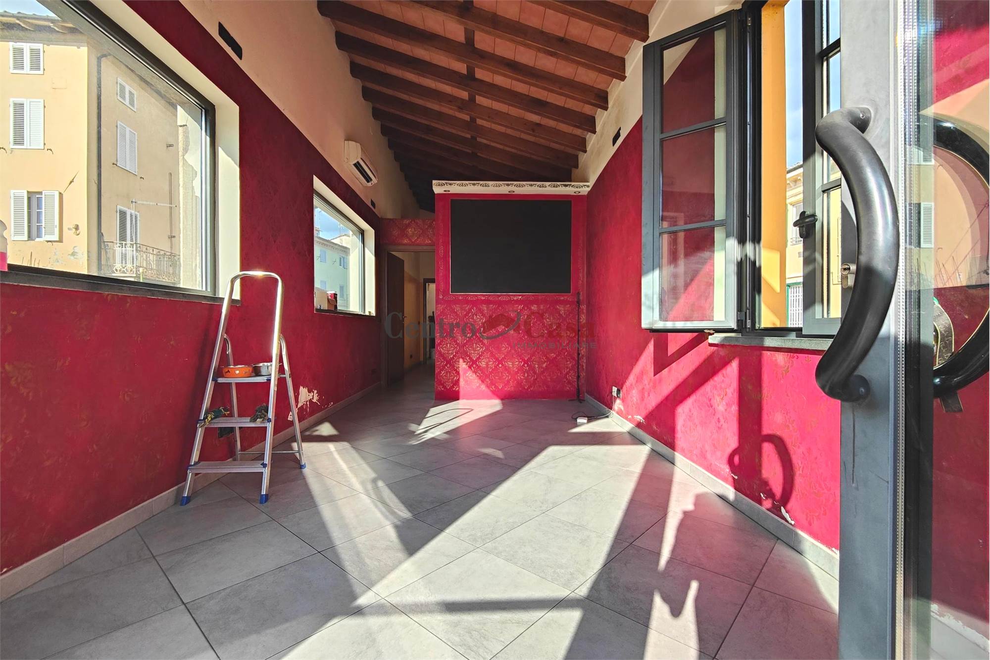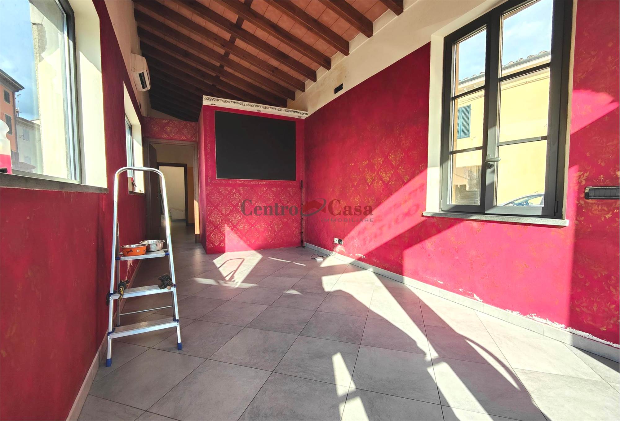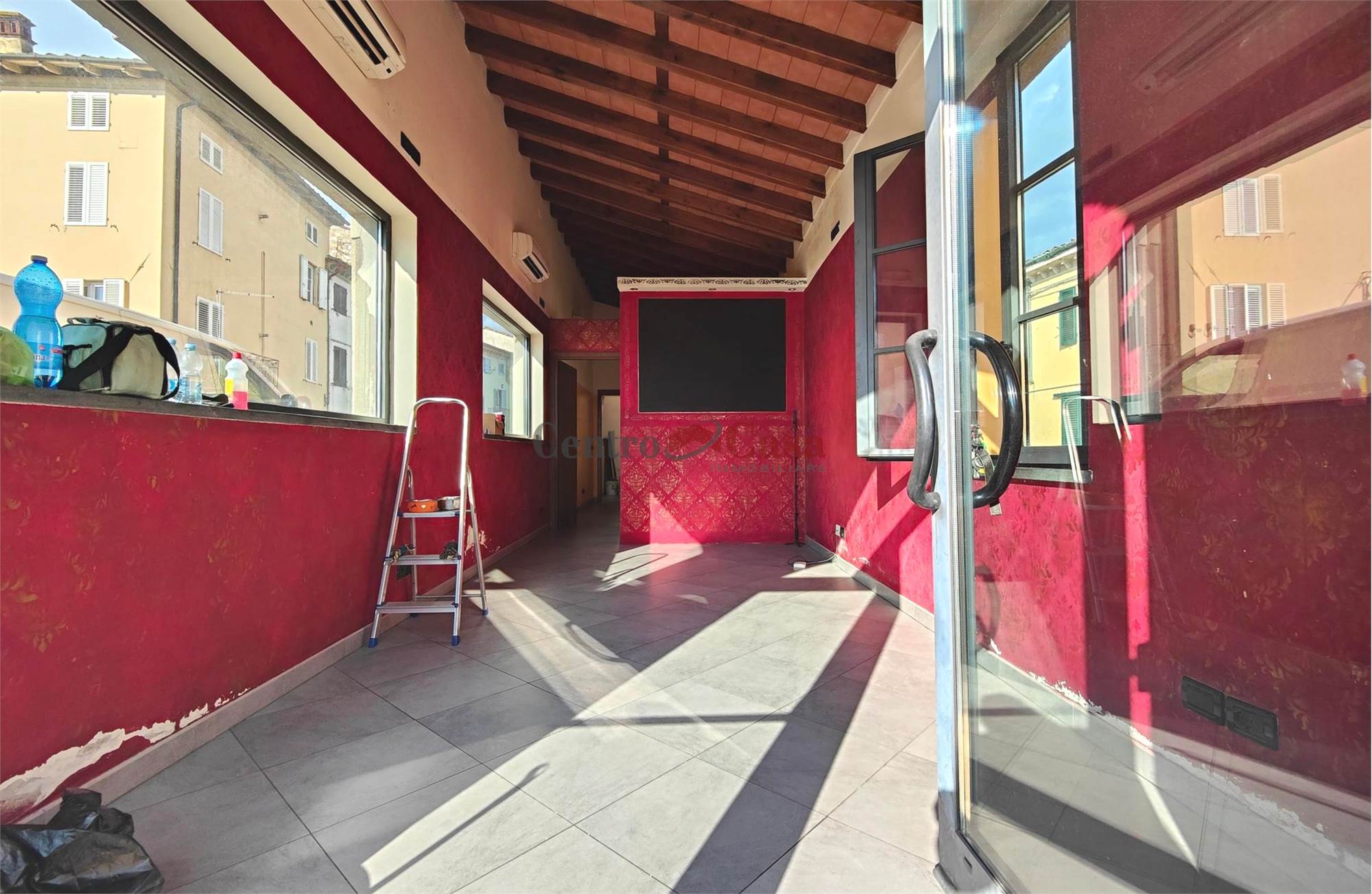 L’accesso avviene tramite vetrina fronte strada, mentre sugli altri due lati liberi sono presenti ampie finestre che garantiscono luce naturale durante tutto l’arco della giornata.