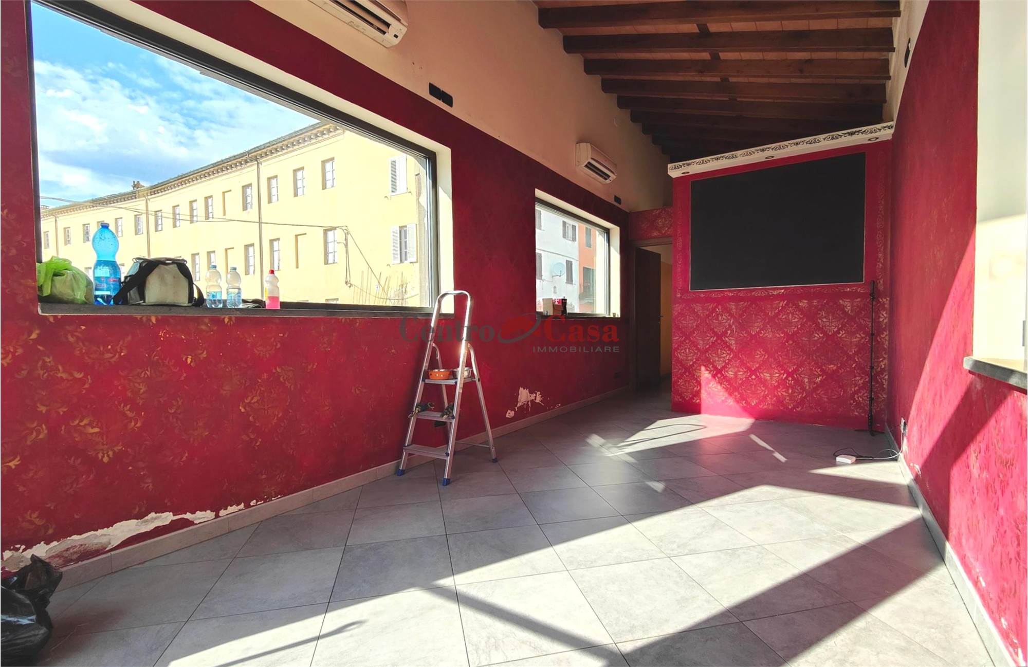 Attualmente il fondo è suddiviso in due ambienti tramite una parete in cartongesso, soluzione facilmente modificabile; allo stato originario si presenta infatti come un unico open space, configurazione che può essere ripristinata con estrema semplicità.